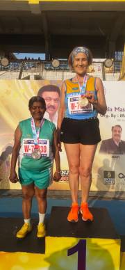 Татьяна Мунтян в возрастной категории W70 также отличилась высоким результатом: золото на дистанции 800 метров, серебро на 2000-метровом стипль-чезе и бронза в беге на 1500 метров.