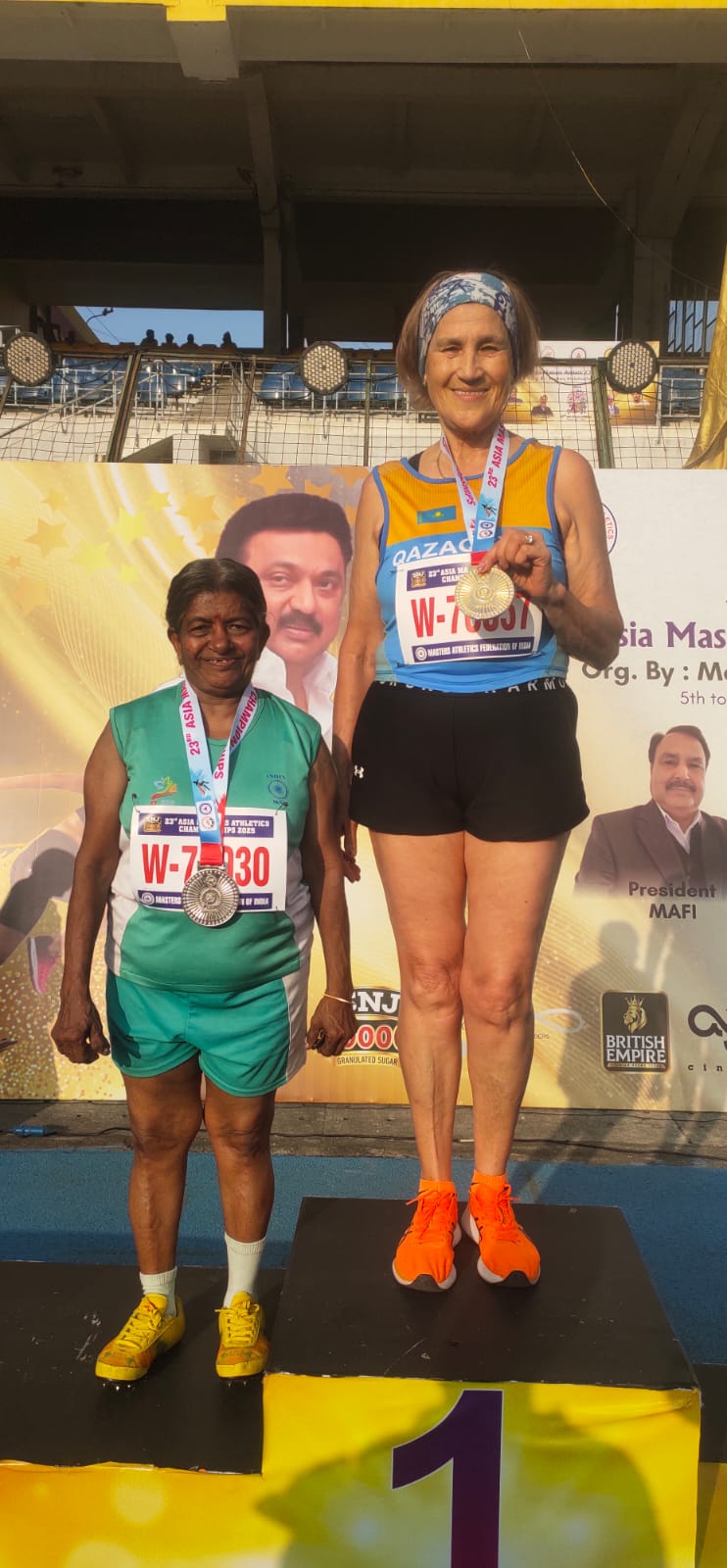 В группе М65 Ильдус Гимаев пополнил копилку медалей двумя бронзами: в прыжке в высоту и эстафете 4×100 метров, а Жандос Ахметов, представлявший категорию М45, стал серебряным призером в прыжке в длину.