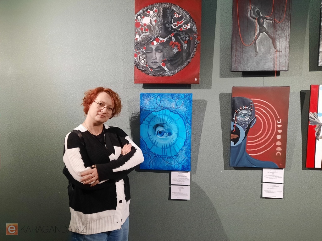 Яна Беляева – постоянная участница Art Start, и с каждой экспозицией развивается все глубже, отметили Татьяна Абилова и Бибигуль Исполова. Её работы всегда разные, автор продолжает поиск собственного стиля. В этот раз карагандинка экспонирует шесть работ – все они авангардные, их она создавала специально для выставки.