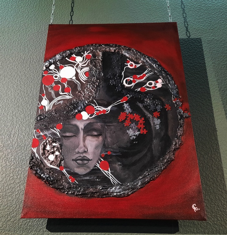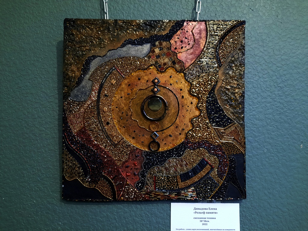 Алёна Давыдова из Темиртау впервые участвует в проекте, по специальности она инженер-проектировщик металлоконструкций. Инженерное чувствуется в её картинах, созданных с помощью бисера: здесь много деталей, которые увлекательно изучать. Её мир – соединение технической точности и философии. Сейчас девушка работает фотографом, а о проекте галереи узнала недавно – когда увидела полотна Виктории Иванчиковой.