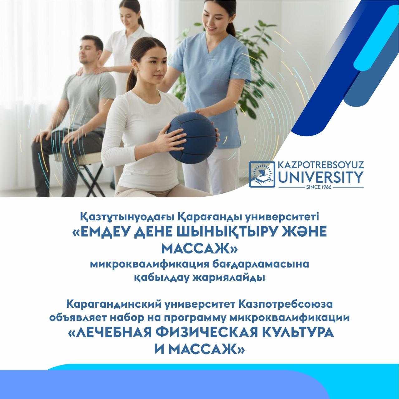 Фото: Карагандинский университет Казпотребсоюза Карагандинский университет Казпотребсоюза открывает набор на 3 практические микроквалификации: 1.Спортивная психология, 2.Спортивный менеджмент, 3.ЛФК и массаж