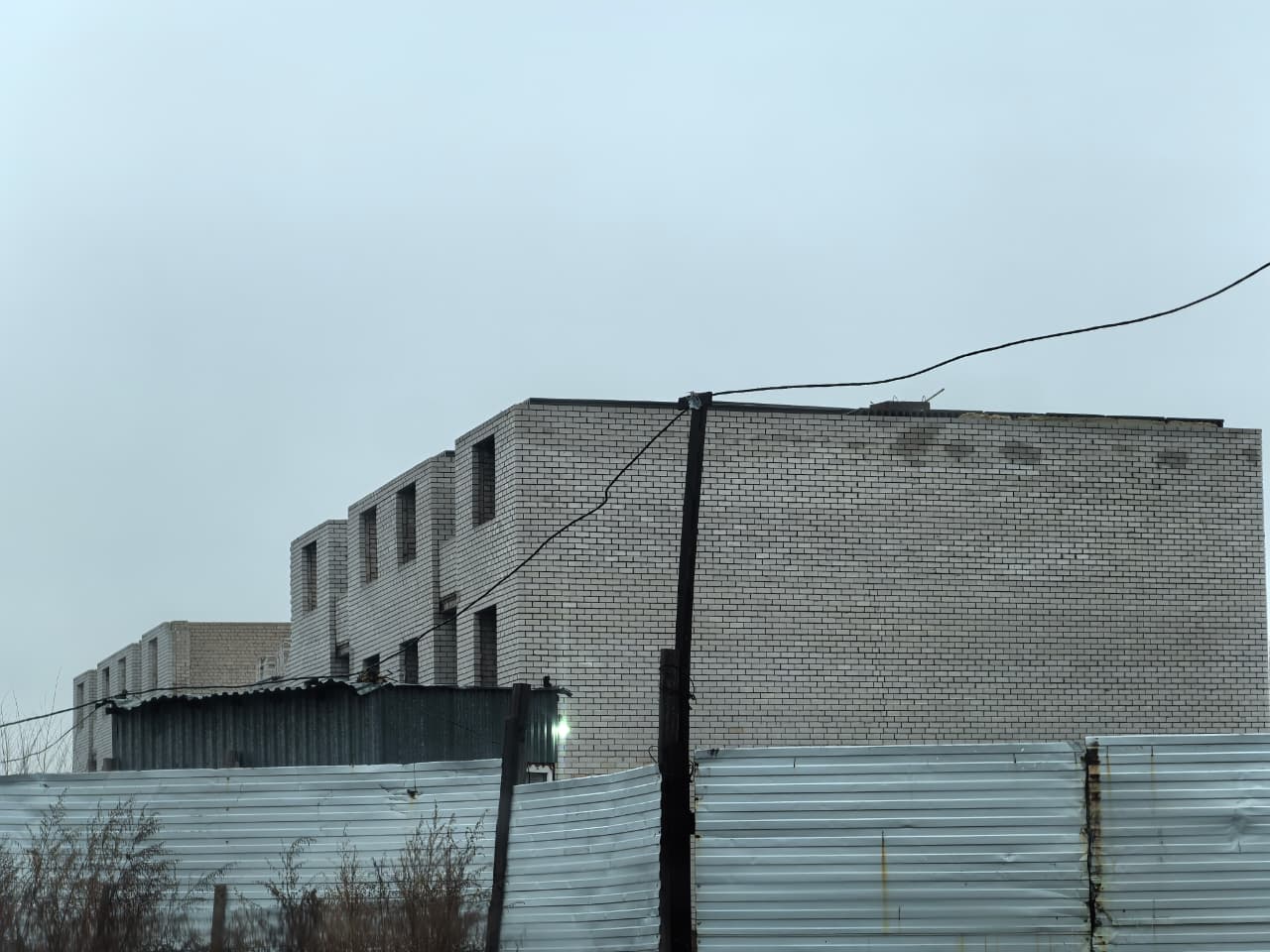 120-квартирный дом выполнен лишь на 10%: залит фундамент, смонтированы фундаментные блоки, подняты два блока: один до третьего этажа, второй до второго. После расторжения договора все работы официально приостановлены, а все закупленные подрядчиком материалы остаются на стройплощадке до решения суда. Объект охраняется.