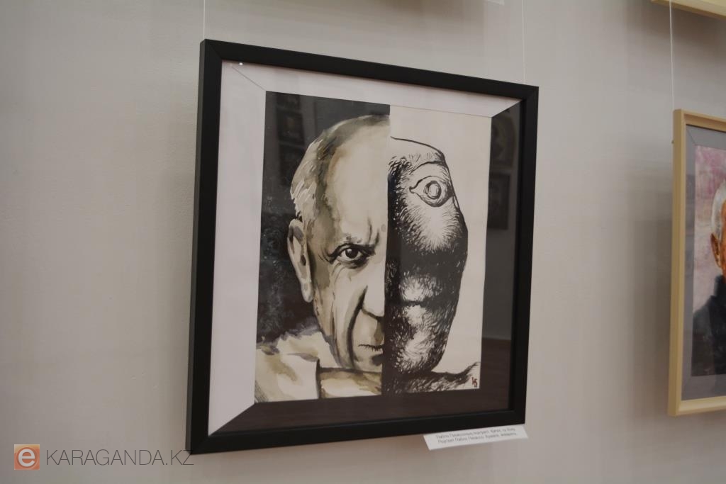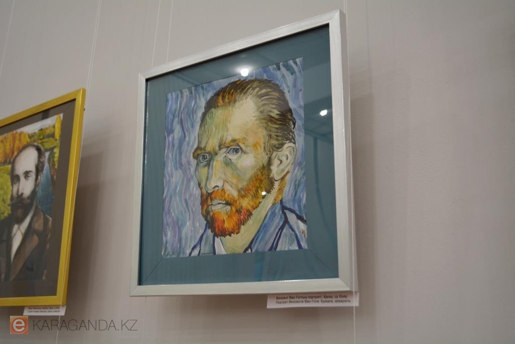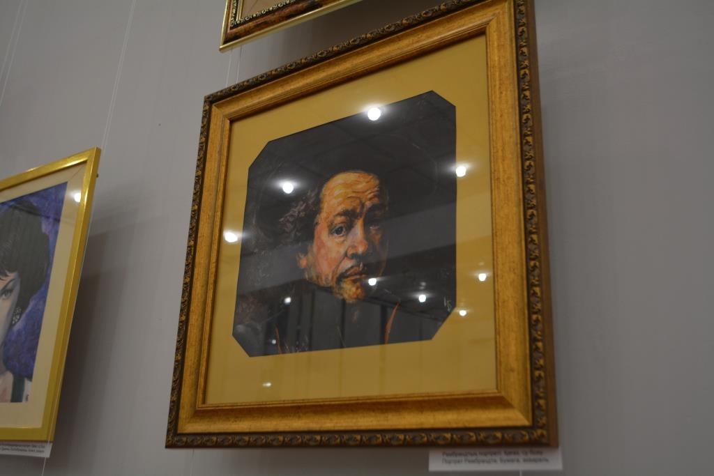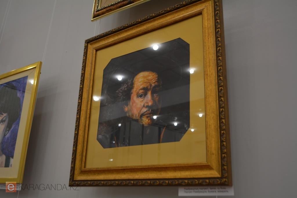 Рядом с Ван Гогом – портрет Пабло Пикассо, и его карагандинец изобразил двойственным: с одной стороны картины – реализм, с другой – авангард. Неподалёку портрет Рембрандта, и здесь акварель уже густая, насыщенная, плотная – сродни маслу.