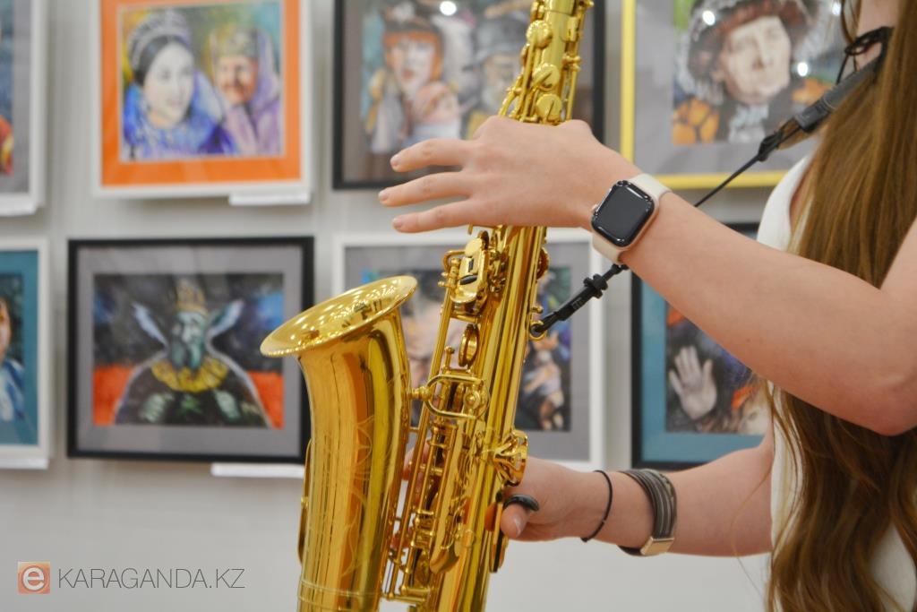 В зале музея не просто картины. Здесь музыка: карагандинка Кристина Аравина на саксофоне играет известные хиты – Fly Me to the Moon Фрэнка Синатры, Et si tu n’existais pas Джо Дассена, Yesterday The Beatles, Bésame Mucho Андреа Бочелли, Hit the Road Jack Рэя Чарльза и знакомые всем «Луч солнца золотого» и «Есть только миг». В этом пространстве время будто движется медленнее, хотя автор картин – человек энергичный, и эту энергию он дарит всем окружающим.
