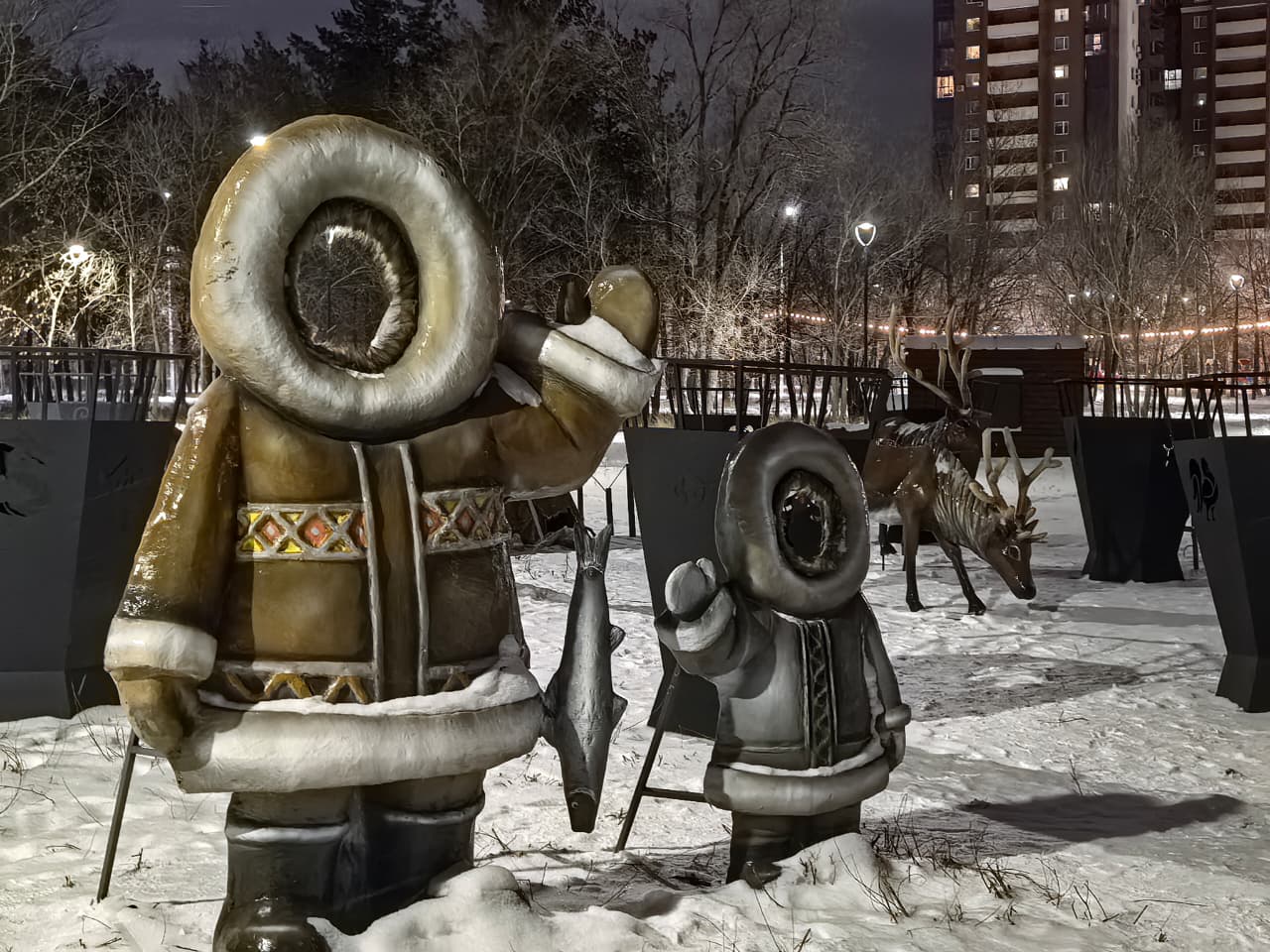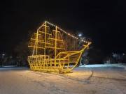 Одним из самых масштабных объектов, как и в прошлом году, стал огромный корабль, подсвеченный десятками огней. Он выглядит так, будто вот-вот отправится в зимнее плавание.