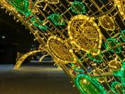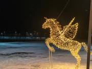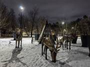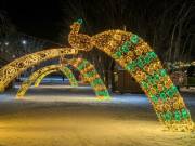 Вдоль дорожек появляются светящиеся олени, лошади и величественный Пегас – словно хранители праздничного настроения. Рядом расположились арки в виде павлинов с расправленными хвостами, переливающиеся разными оттенками света.