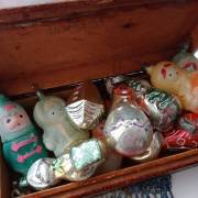 «Коллекция моих ёлочных игрушек тоже началась с католического храма. Когда я спросила у сестёр-монахинь о старых игрушках, выяснилось, что на чердаке есть ящик с украшениями 60-70-х годов. Если они не разбились – можно было забрать. С чердака я спустила огромную коробку: часть игрушек действительно оказалась разбитой, но многие уцелели. Люди уезжали, оставляли вещи в храмах – так они и дошли до нового дома», - говорит Оксана.