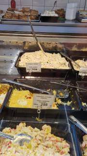 То есть часть ингредиентов подорожала, но за счёт дешёвой колбасы и дешёвого горошка салат в целом остался примерно в той же ценовой политике.