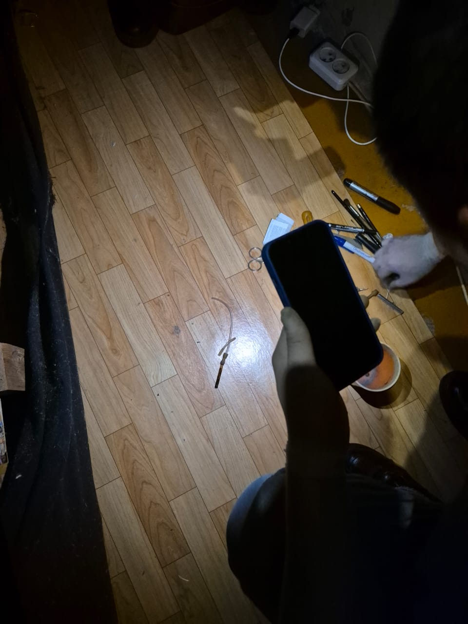 Кроме того, в квартире были найдены предметы, свидетельствующие о причастности мужчины к употреблению наркотиков: пластиковая бутылка, используемая для их потребления, а также пипетки с остатками неизвестного вещества. Также были изъяты сотовые телефоны, которые могут представлять интерес для следствия.