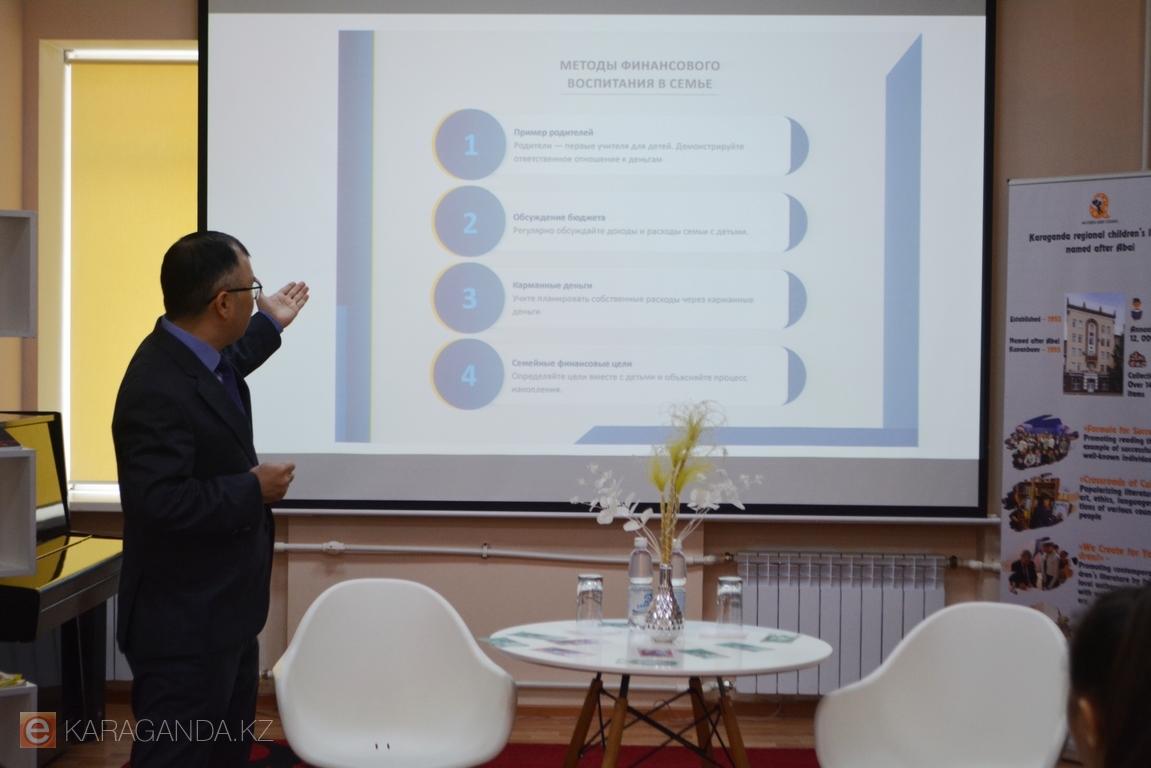 Сегодня, 26 января, в областной детской библиотеке имени Абая прошёл первый урок курса «Финансовая грамотность для детей». Проект реализуют вместе с Карагандинским филиалом Национального банка РК, а занятие провели его представители Бектурган Бозтериев и Нурлан Торегожин, сообщает корреспондент ekaraganda.kz.