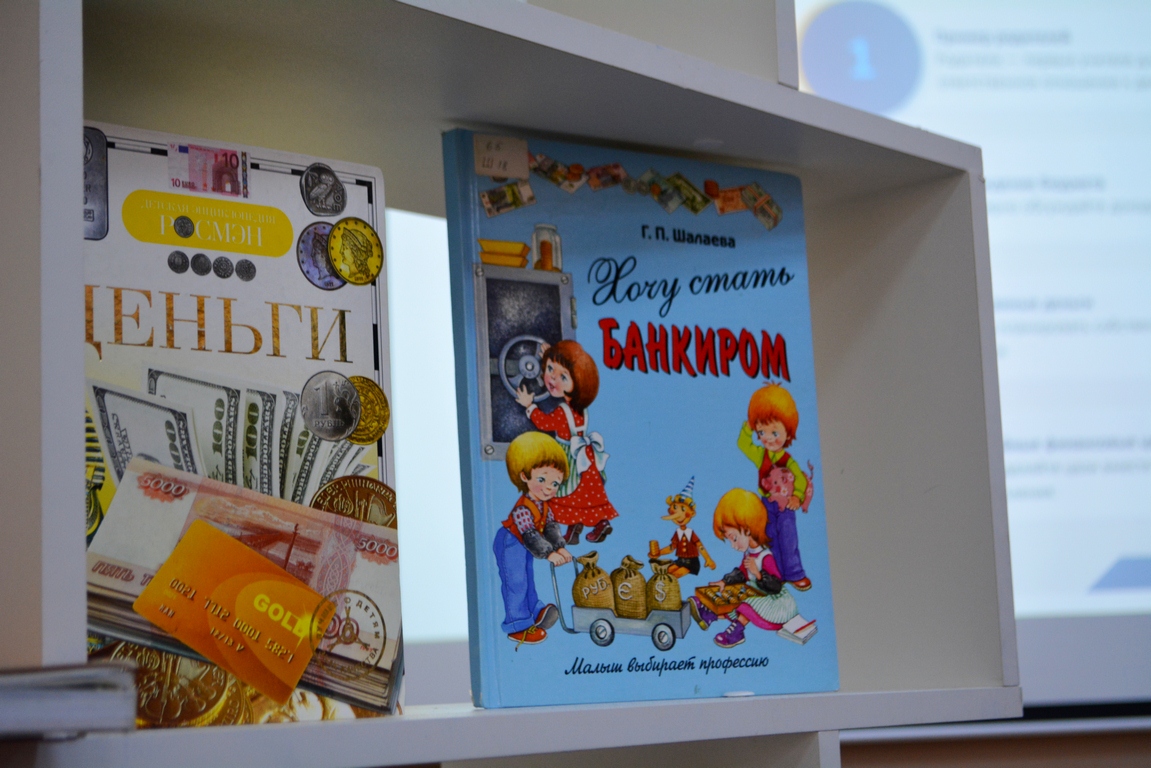 В качестве дополнения к урокам участникам представили книги из фонда библиотеки о финансовой грамотности, и здесь среди них «Увлекательные и поучительные приключения Тигра на Великом шелковом пути» А. Рахматулаева, книга Е. Блискавки «Дети и деньги», О. Огай «Теңгенің тарихы» и многие другие, популярные сейчас.
