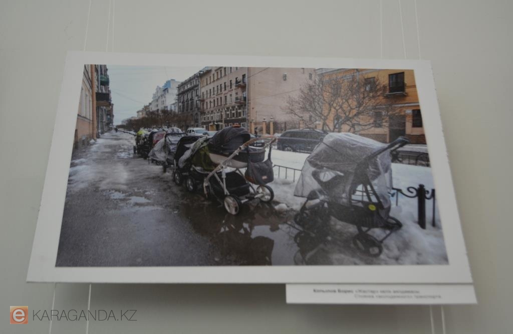 В работах участников выставки зима раскрывается через личный опыт – например, оптимистический, и именно с такого взгляда начинается история Бориса Копылова. Среди семи его представленных снимков – «Стоянка молодёжного транспорта», на котором в ряд расположились детские коляски. Это и другие его фото были сделаны в Санкт–Петербурге, где Борис сейчас часто бывает.