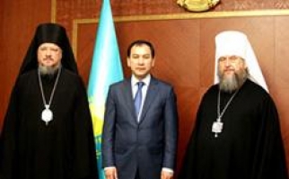 19 апреля аким области Бауржан Абдишев провел встречу с главой русской православной церкви в Казахстане митрополитом Астанайским и Казахстанским Александром, доставившим в регион реликвию православной церкви - мощи архиепископа Крымского Луки.