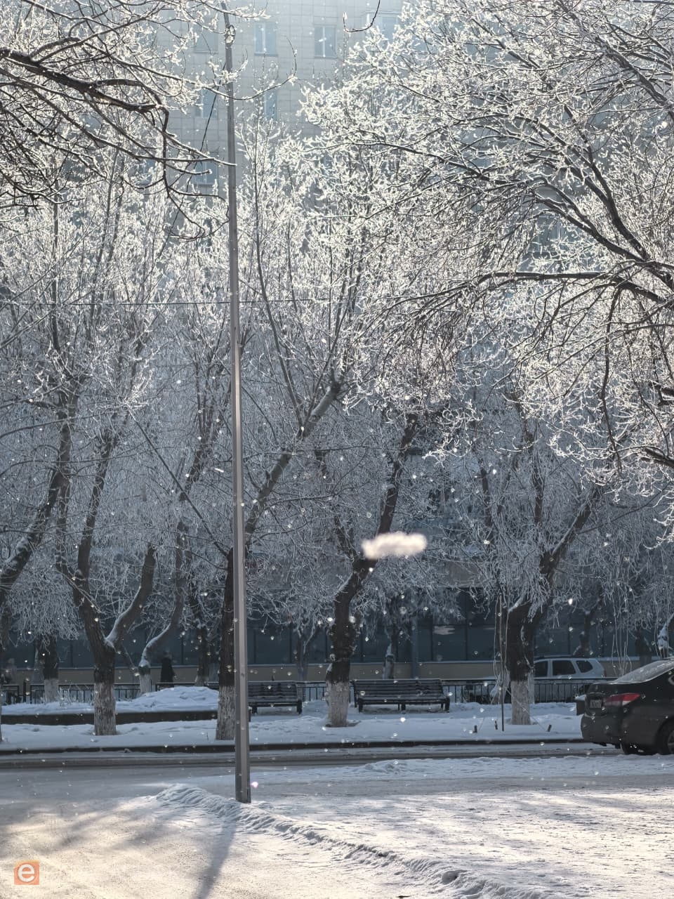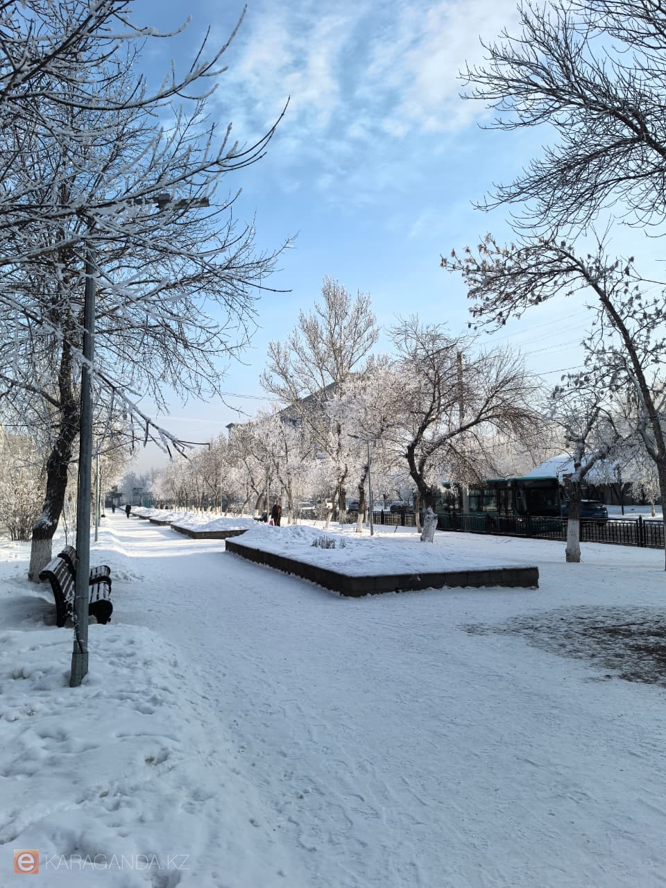 На календаре приближающийся февраль, а на часах утро. Зима в Караганде сегодня особенно сказочная.