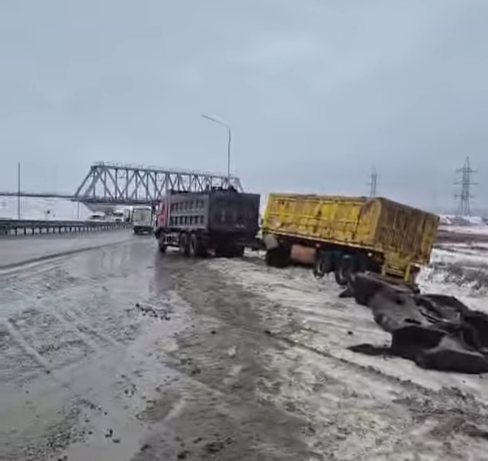 - Два грузовика врезались в опоры освещения на трассе Караганда – Темиртау