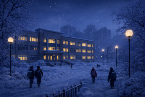 Изображение сгенерировано нейросетью Из-за погоды – сильных морозов и усилением ветра – в городе металлургов учеников первой смены 0-4 классов сегодня, 13 февраля, перевели на дистанционный формат обучения, сообщает корреспондент ekaraganda.kz.