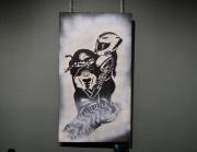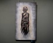 На создание таких картин, добавляет художник, уходит больше времени. Максимальное время, потраченное на одну картину – в сумме около 40 часов. Сначала холст тонировался чёрным цветом, и уже потом на него наносился образ героини полотна – белой и фосфорной красками. Такую технику Дмитрий продолжит развивать.