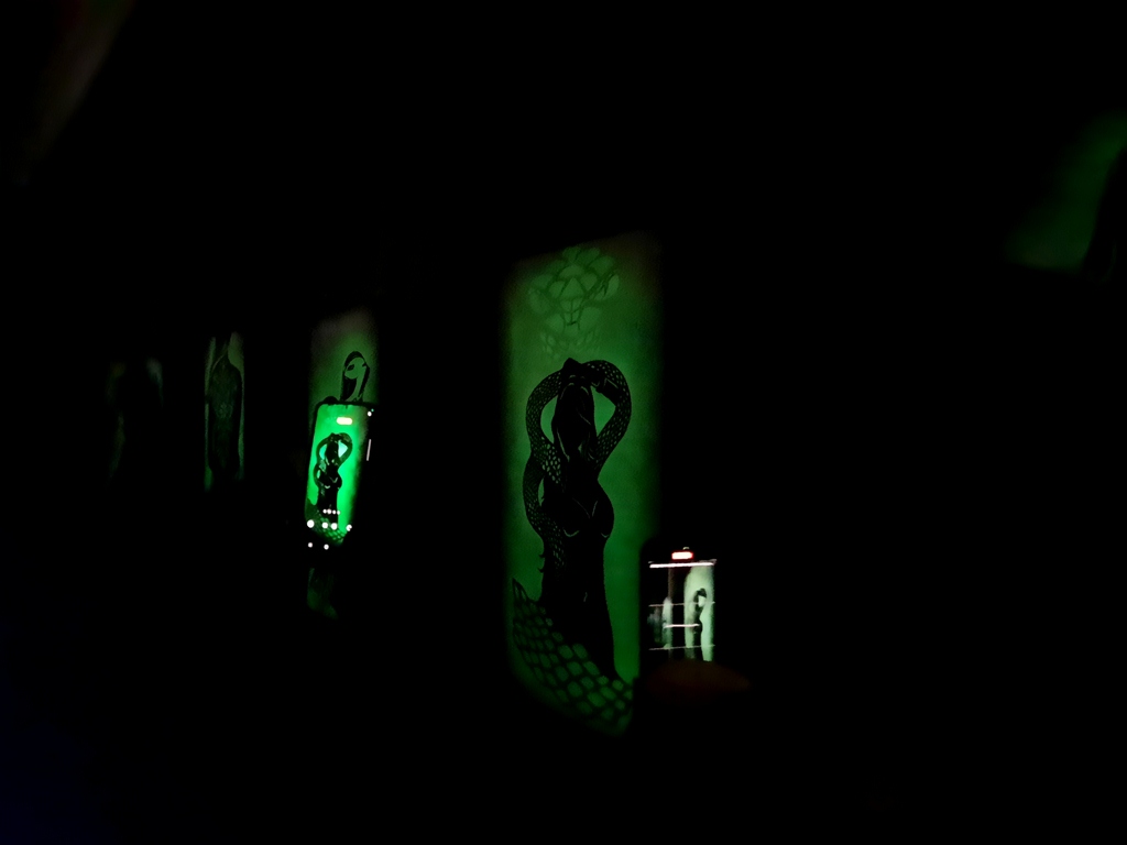 «Это непростой процесс: надо преподнести работу так, чтобы было интересно рассматривать её при свете – но и чтобы в темноте при сиянии она смогла показать свой сюжет и смысл. В первую очередь сделать эти работы меня подвигла фраза из фильма Warcraft – это и стало названием выставки. Кроме того, в ленте был момент, когда герой попал в волшебный источник, и его окутало зелёное свечение – а такое даёт именно фосфор», – поделился Дмитрий Кецман.