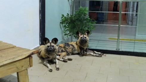 Гиеновидные собаки сразу привлекли внимание сотрудников и посетителей. У них необычный пятнистый окрас, большие мохнатые уши, которые служат своеобразными «радарами» – они способны улавливать звуки на очень больших расстояниях.