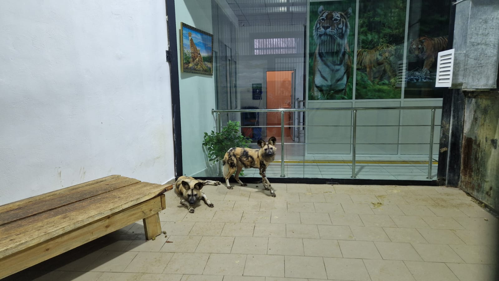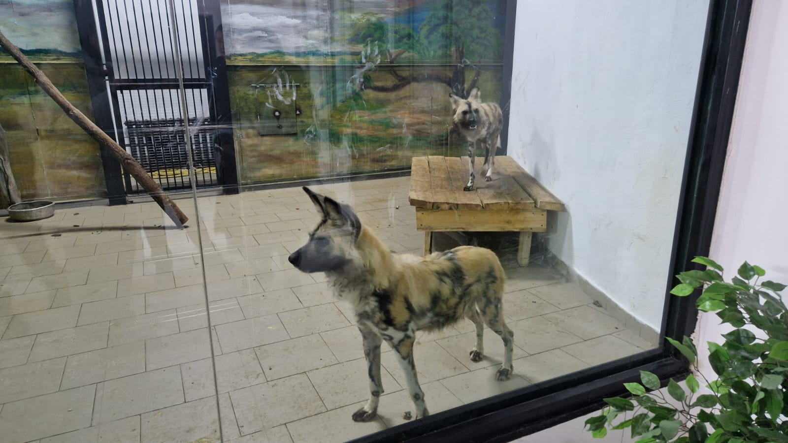 Гиеновидные собаки отличаются высокой активностью, они быстро передвигаются по вольеру, постоянно исследуют территорию и проявляют живой интерес к посетителям. Стоит кому-то подойти к витрине, как пятнистые обитатели тут же оказываются рядом, внимательно изучая нового гостя.