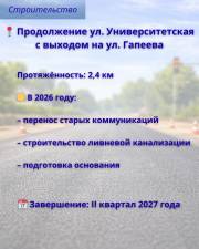 По словам главы города, с наступлением строительного сезона будет продолжено строительство ранее начатых автомобильных дорог. В общей сложности речь идёт более чем о 13 километрах новых участков.