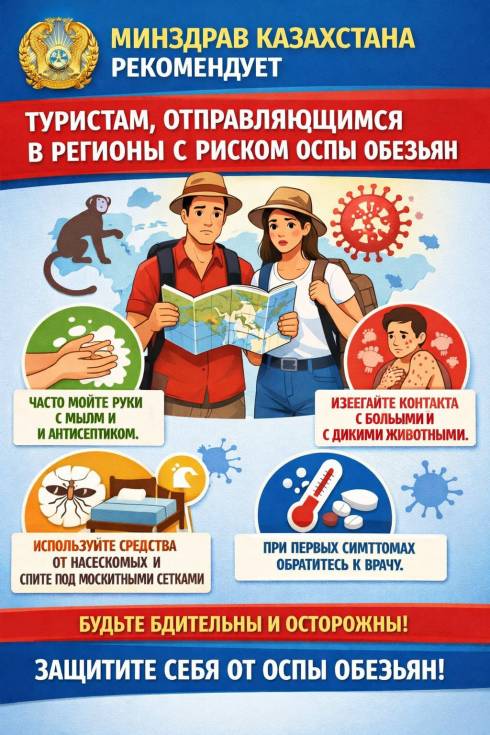- Минздрав РК дал рекомендации туристам, отправляющимся в регионы с риском оспы обезьян