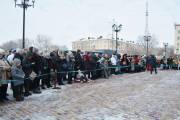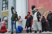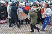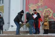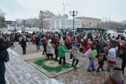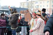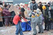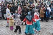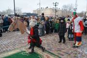 Провожать Масленицу начали в 11 часов утра – и уже к этому времени зрителей на площади у ДК горняков собралось много. Сюда пришли люди разных возрастов, но с одинаково хорошим настроением, и на это настроение не повлиял даже снег, который начался ближе к финалу программы.