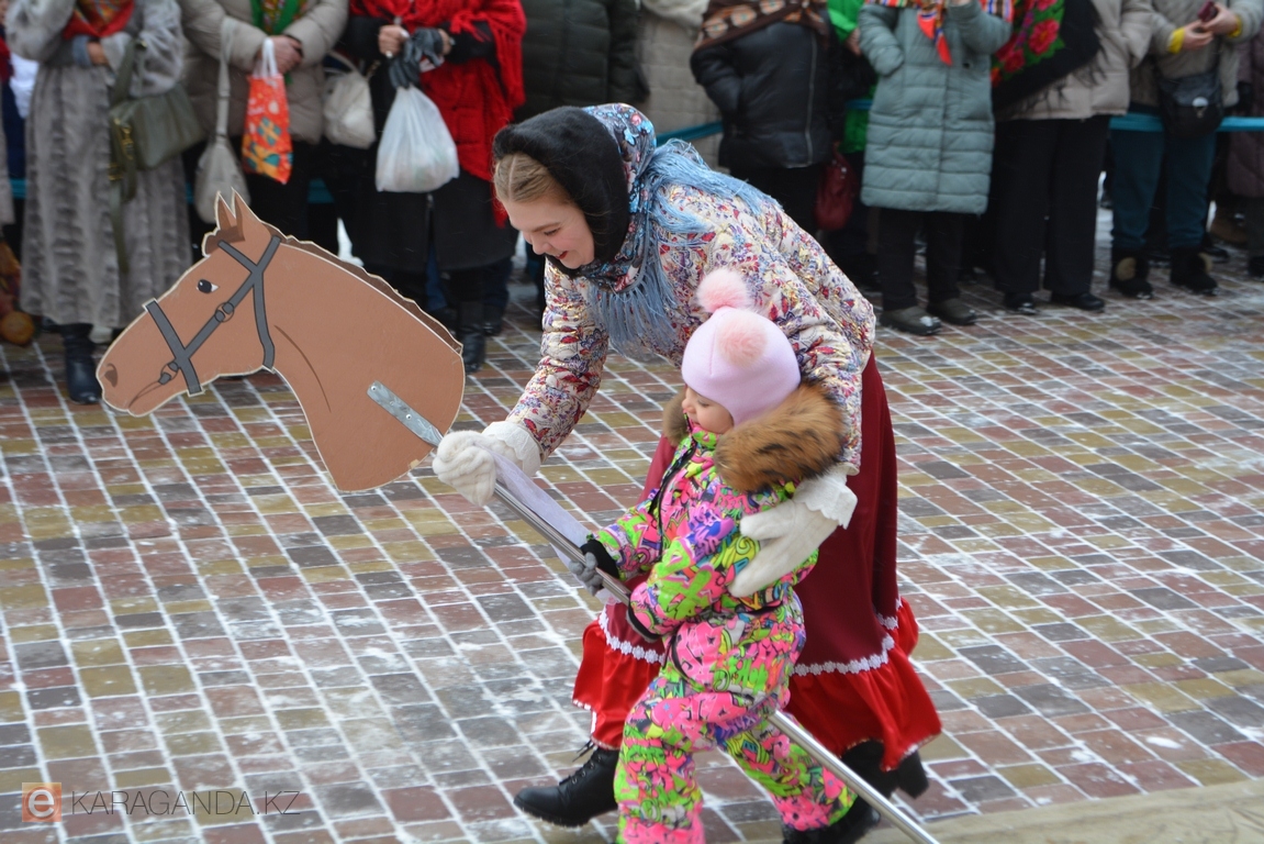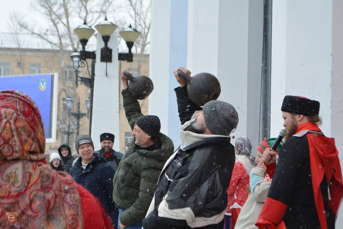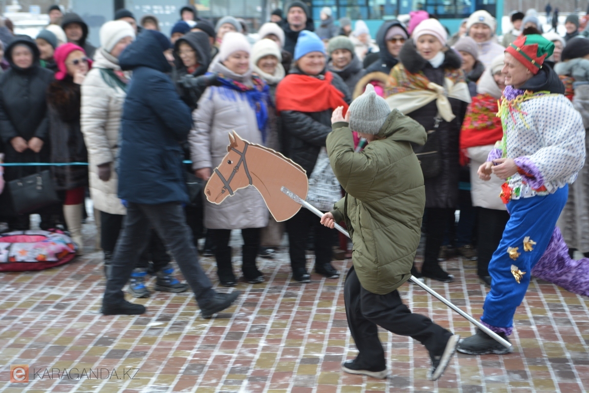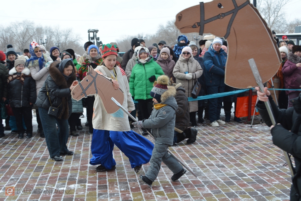 Окончание масленичной недели отпраздновали перед карагандинским Дворцом культуры горняков вчера, 22 февраля. Общественное объединение «Казачья вольница» и участники других этнокультурных центров области радовали публику: народу собралось немало, люди пробовали себя в конкурсах и играх. Корреспондент ekaraganda.kz тоже заглянула сюда.