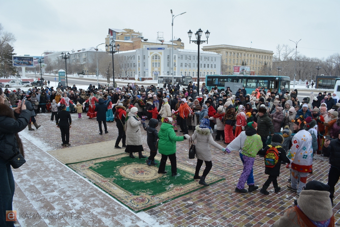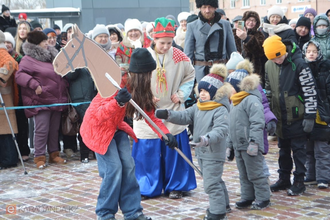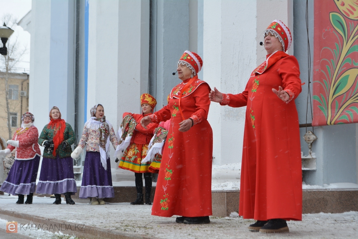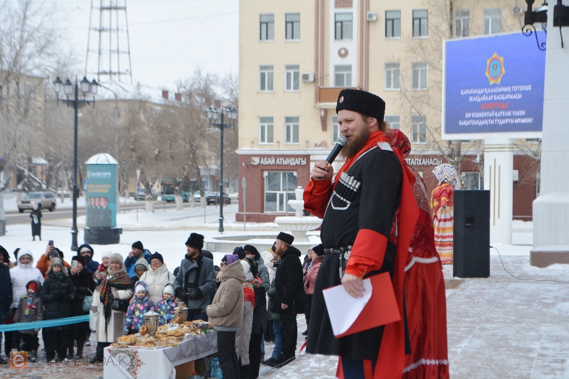 Окончание масленичной недели отпраздновали перед карагандинским Дворцом культуры горняков вчера, 22 февраля. Общественное объединение «Казачья вольница» и участники других этнокультурных центров области радовали публику: народу собралось немало, люди пробовали себя в конкурсах и играх. Корреспондент ekaraganda.kz тоже заглянула сюда.