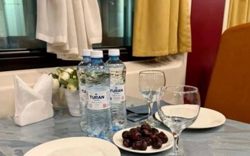 Во время ауызашар (ифтар) в вагон-ресторанах пассажирам будут бесплатно предоставляться вода и финики. В период ифтара в поездах не будет продаваться алкоголь.