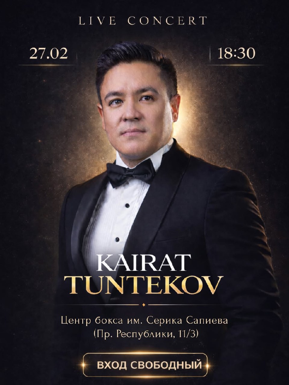 - Кайрат Тунтеков даст бесплатный концерт в Караганде
