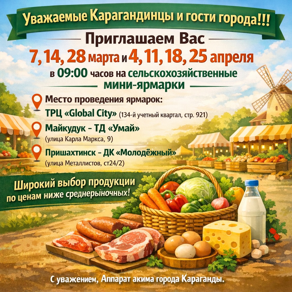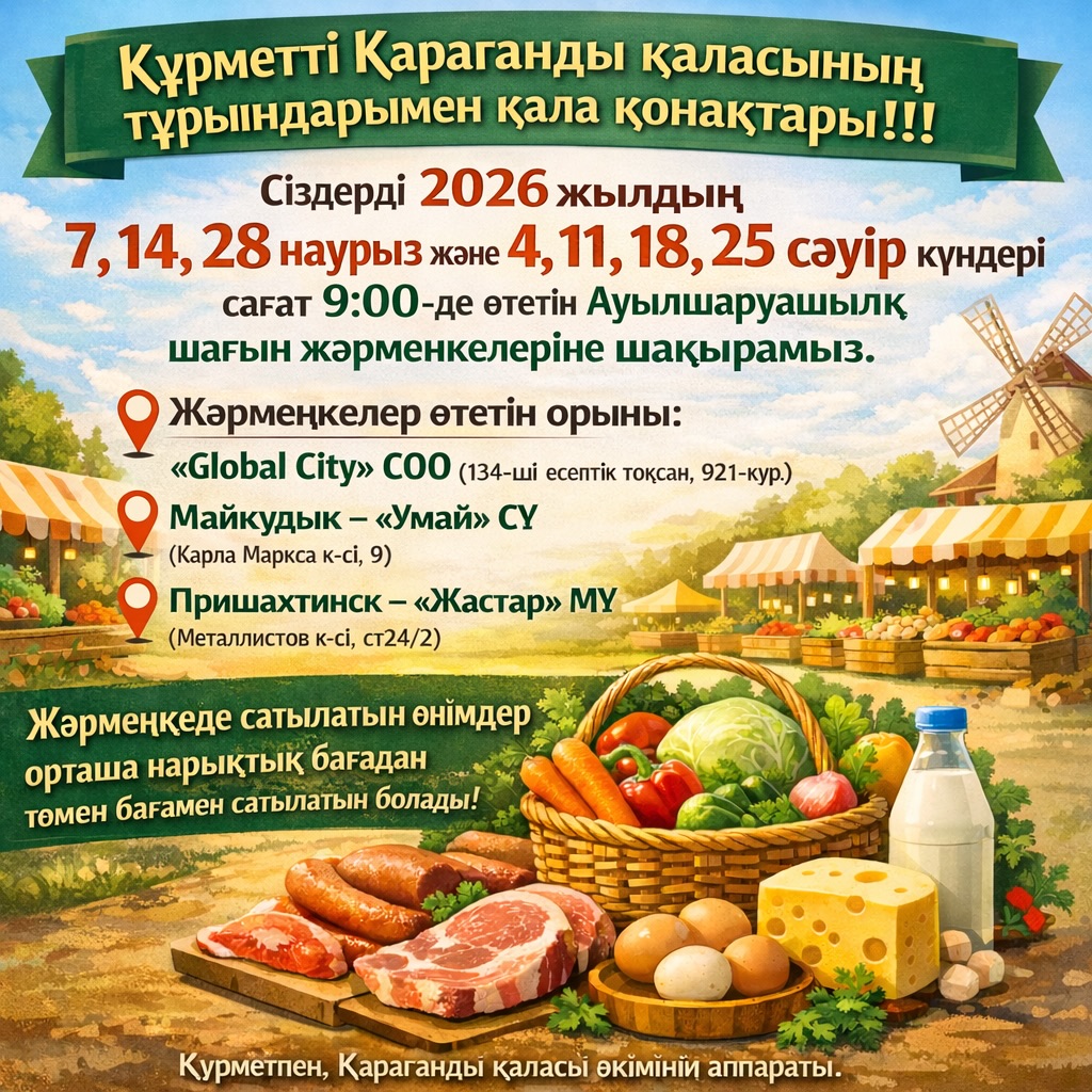 Организаторы приглашают жителей и гостей Караганды поддержать местных производителей и воспользоваться возможностью приобрести свежую продукцию по доступным ценам.