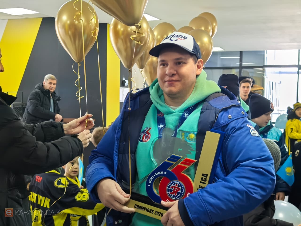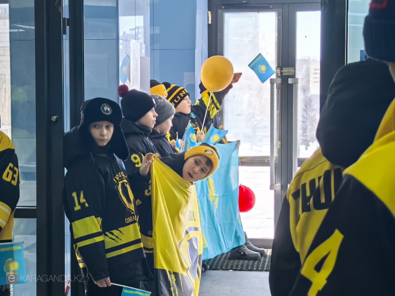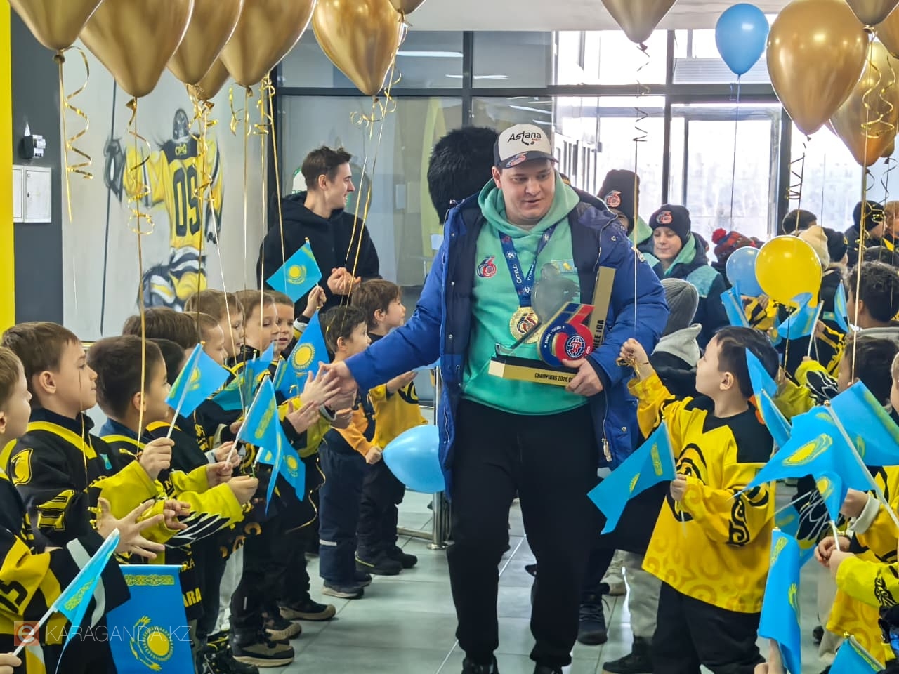 Фото автора Сегодня, 27 февраля, в ледовом дворце «Караганда-Арена» карагандинцы встречали своих юных героев. Ровно в час дня сюда прибыли карагандинские хоккеисты, участники команды Astana Team, которая одержала громкую победу на престижном международном турнире в Канаде, передает корреспондент ekaraganda.kz.