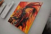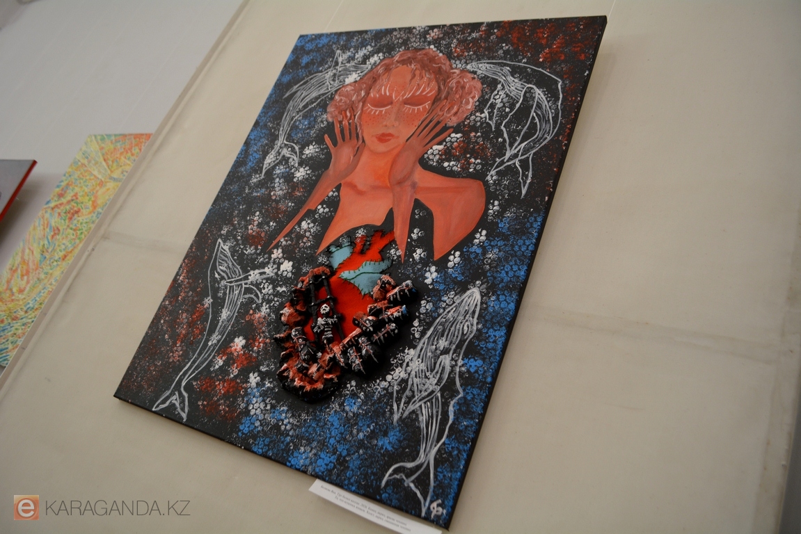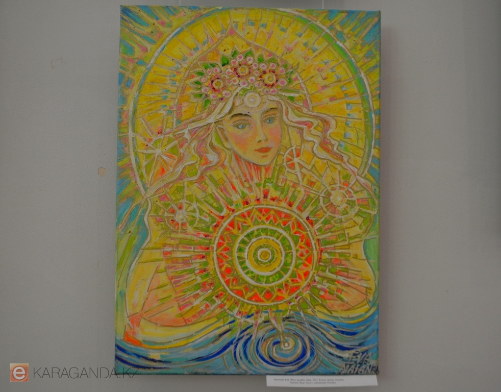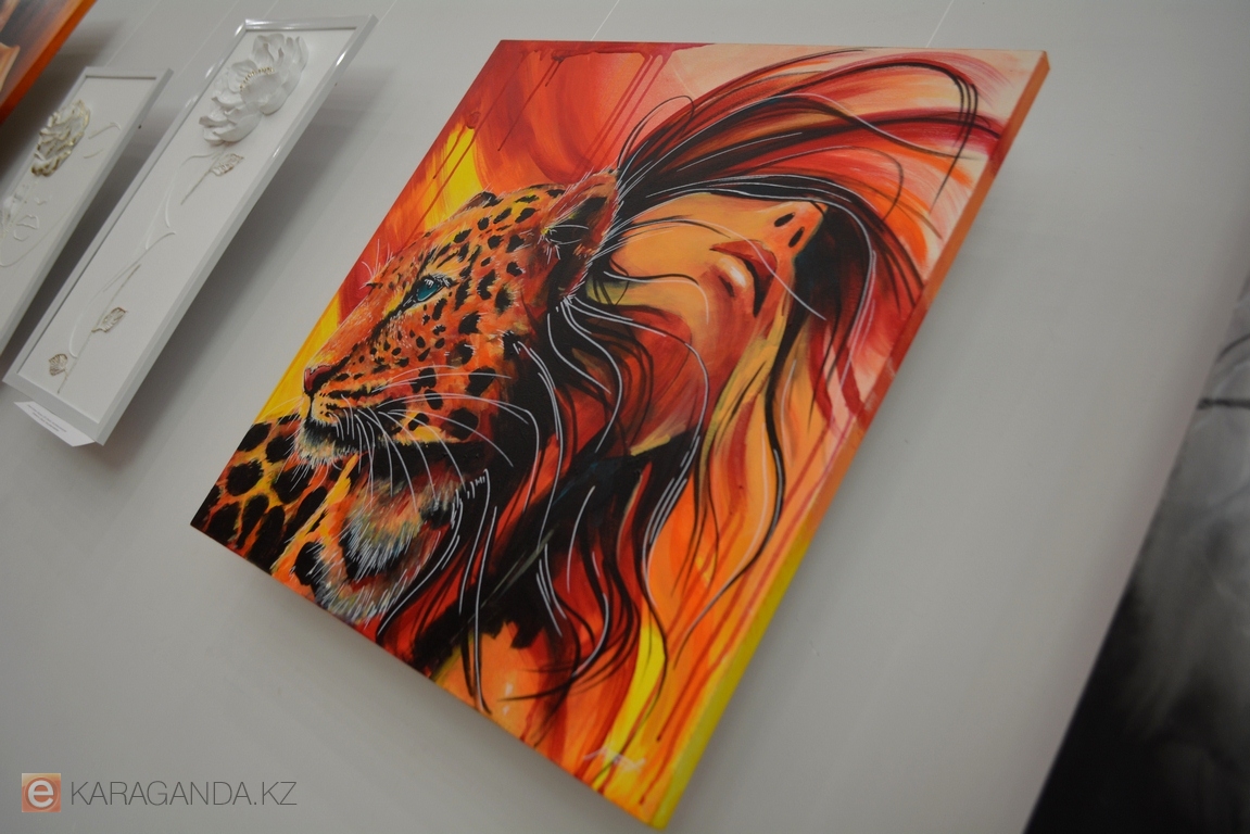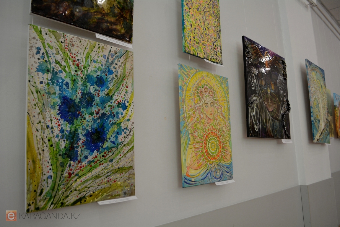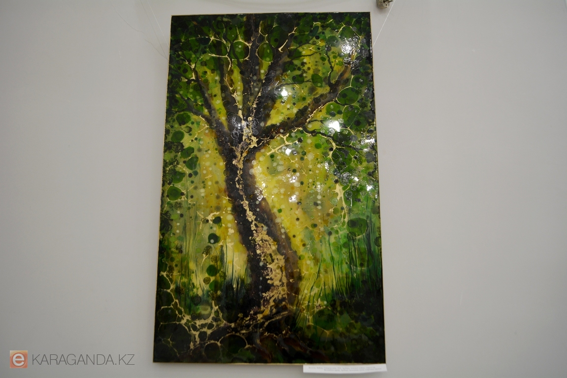 «Масляная живопись передаёт чувства в работе "Латино. Язык пламени" Саи Инкарбековой, акрил звенит чистыми, весенними нотами в "Сиренево-жёлтом настроении" Татьяны Бакалкиной. Эпоксидная смола застывает прозрачным глянцем, заключая в себе "Древо времени" Александры Котляровой, а золотая поталь подчеркивает стройные силуэты фигур "Африканок" Айгерим Жукушевой. Декоративные элементы складываются в магические узоры, а смешанная техника позволяет Еве Натановой создавать целые миры», – описывает Айгуль Омарова.