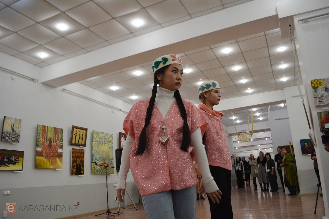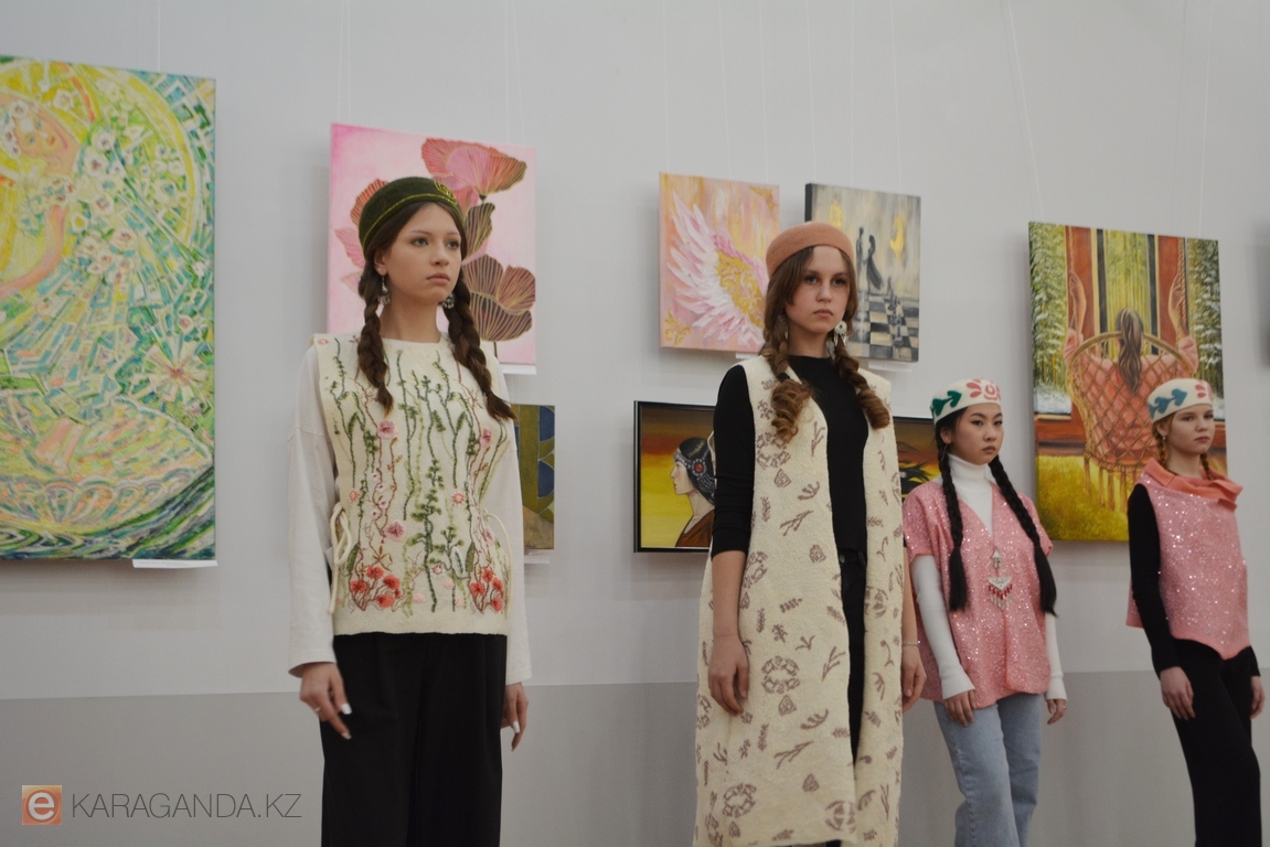 Зрителям представили коллекцию изделий из войлока «Көктемнің тынысы» от мастера по работе с войлоком Раушан Адаковой. Национальную одежду тоже продемонстрировали – уже от клуба «Дружба» при музее Изобразительного искусства.