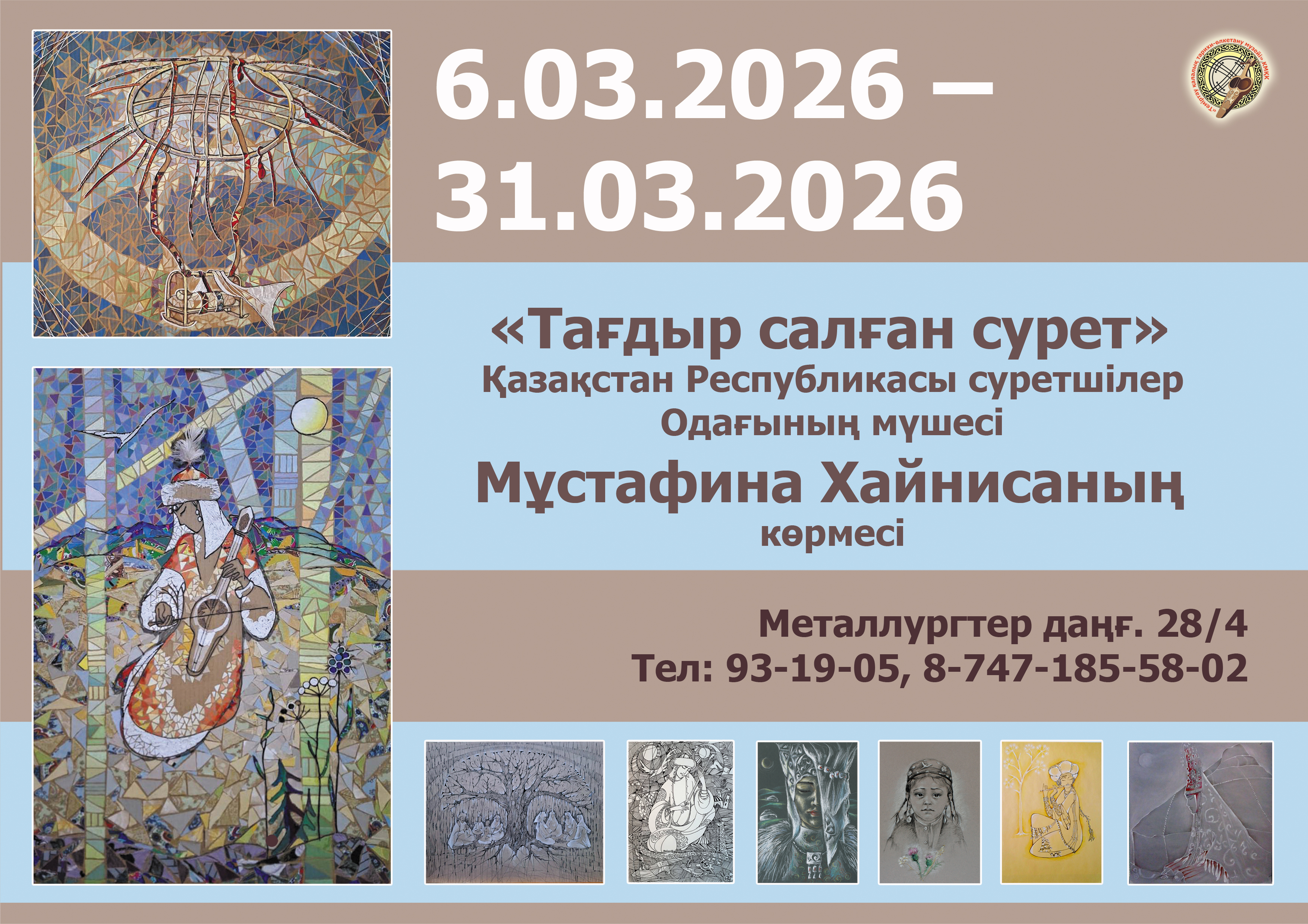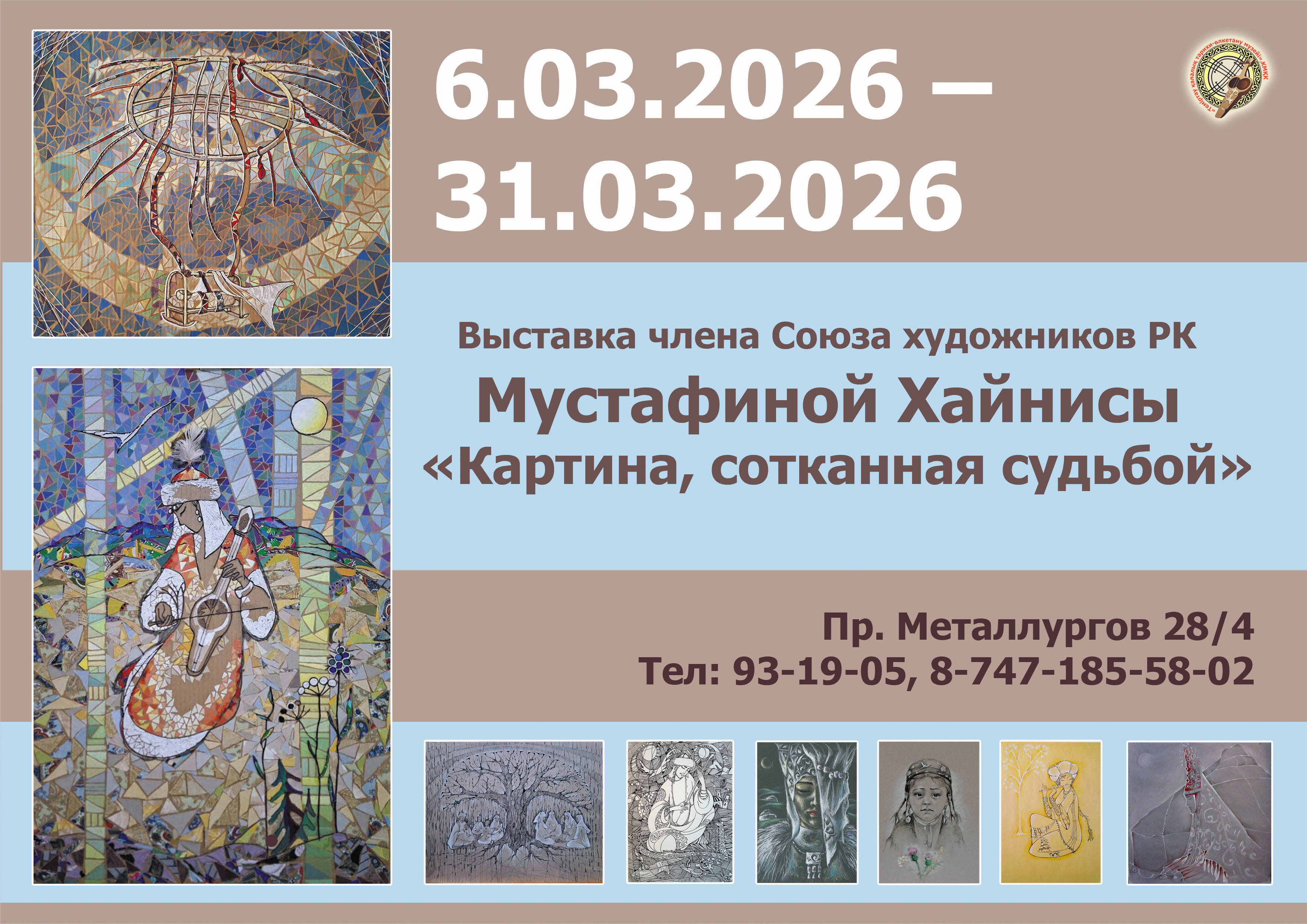 Фото: музей Темиртау Завтра, 6 марта, в 16:00 в историко-краеведческом музее Темиртау откроется персональная выставка члена Союза художников Казахстана Хайнисы Мустафиной «Картина, сотканная судьбой». Экспозиция приурочена к Международному женскому дню и познакомит посетителей с работами художницы, посвященными образу женщины, передает корреспондент ekaraganda.kz.