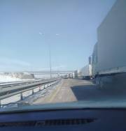 Ограничение движения было введено еще утром 10 марта из-за ухудшения погодных условий. С тех пор на посту и вдоль дороги образовалось большое скопление машин.