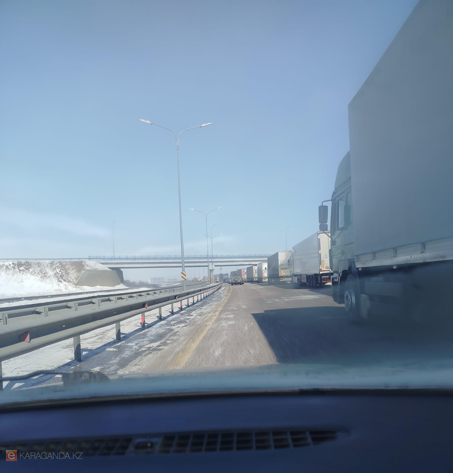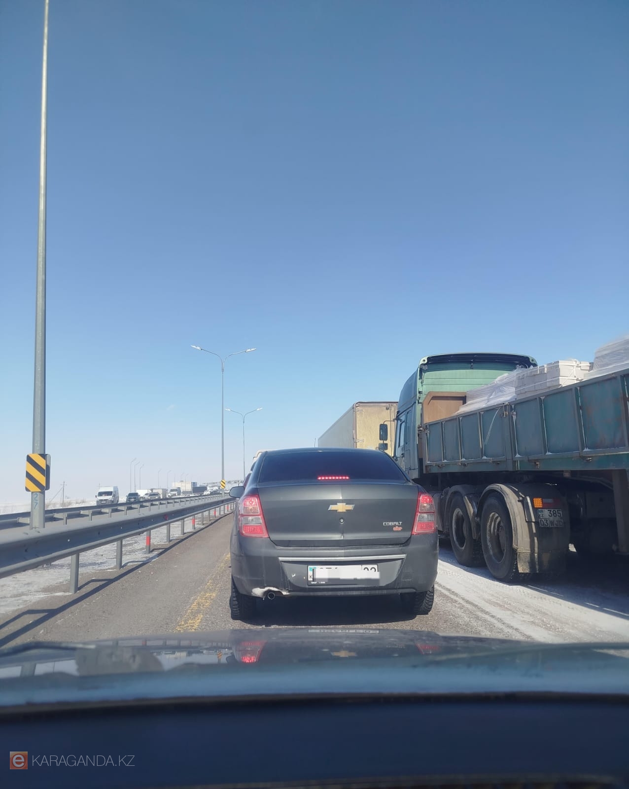 Фото автора В Карагандинской области по-прежнему остается закрытым один участок республиканской автодороги от Темиртау до Астаны. На трассе скопилась большая колонна автомобилей, которая стоит здесь уже со вчерашнего утра. Когда планируют возобновить движение, выяснил корреспондент ekaraganda.kz.