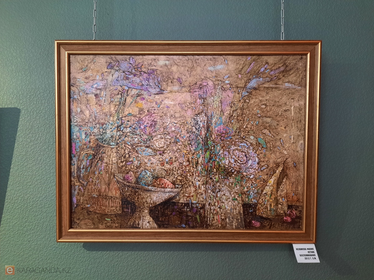 Фото автора До 26 марта в карагандинской галерее «Алтын Ғасыр» открыта экспозиция «В ритме равноденствия». Здесь 58 работ художников разных поколений и направлений, а философские размышления соседствуют с метафорическими образами, пейзажами и личными высказываниями. Корреспондент ekaraganda.kz заглянула на выставку.