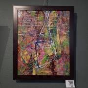 «Это очень ранняя работа, которую я закончил в Санкт-Петербурге. Работал темперой – краской, которая быстро сохнет и не смывается водой, и потому предполагает определённую жёсткость исполнения. В целом же я работаю акрилом: он даёт больше возможностей для экспериментов», – поделился Пётр Кишкис.