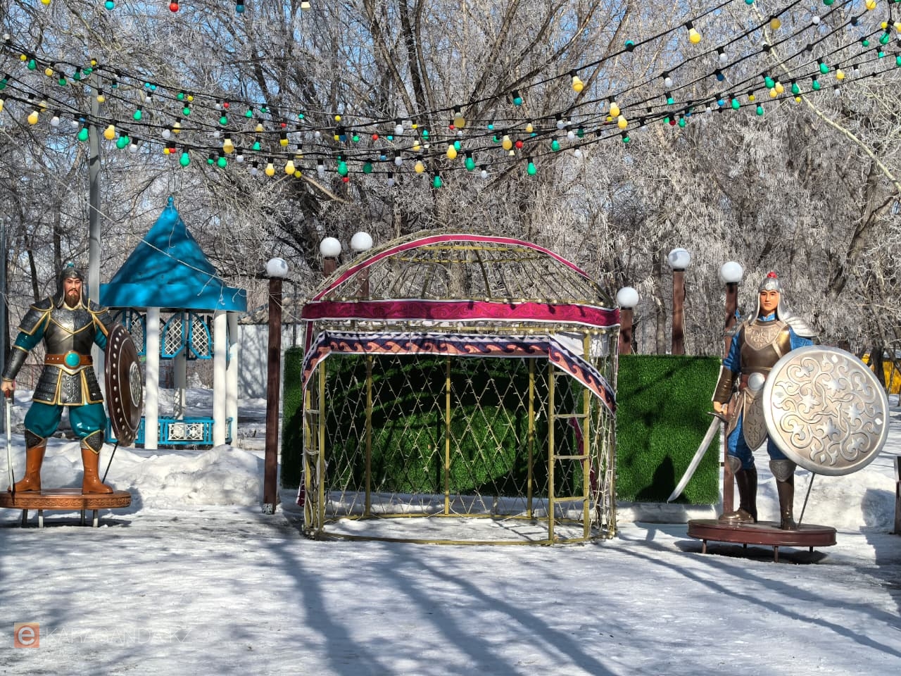 Но главное здесь сейчас – это подготовка к предстоящем Наурызу. Парк постепенно меняет свой облик, наполняясь национальными мотивами и атмосферой большого праздника.