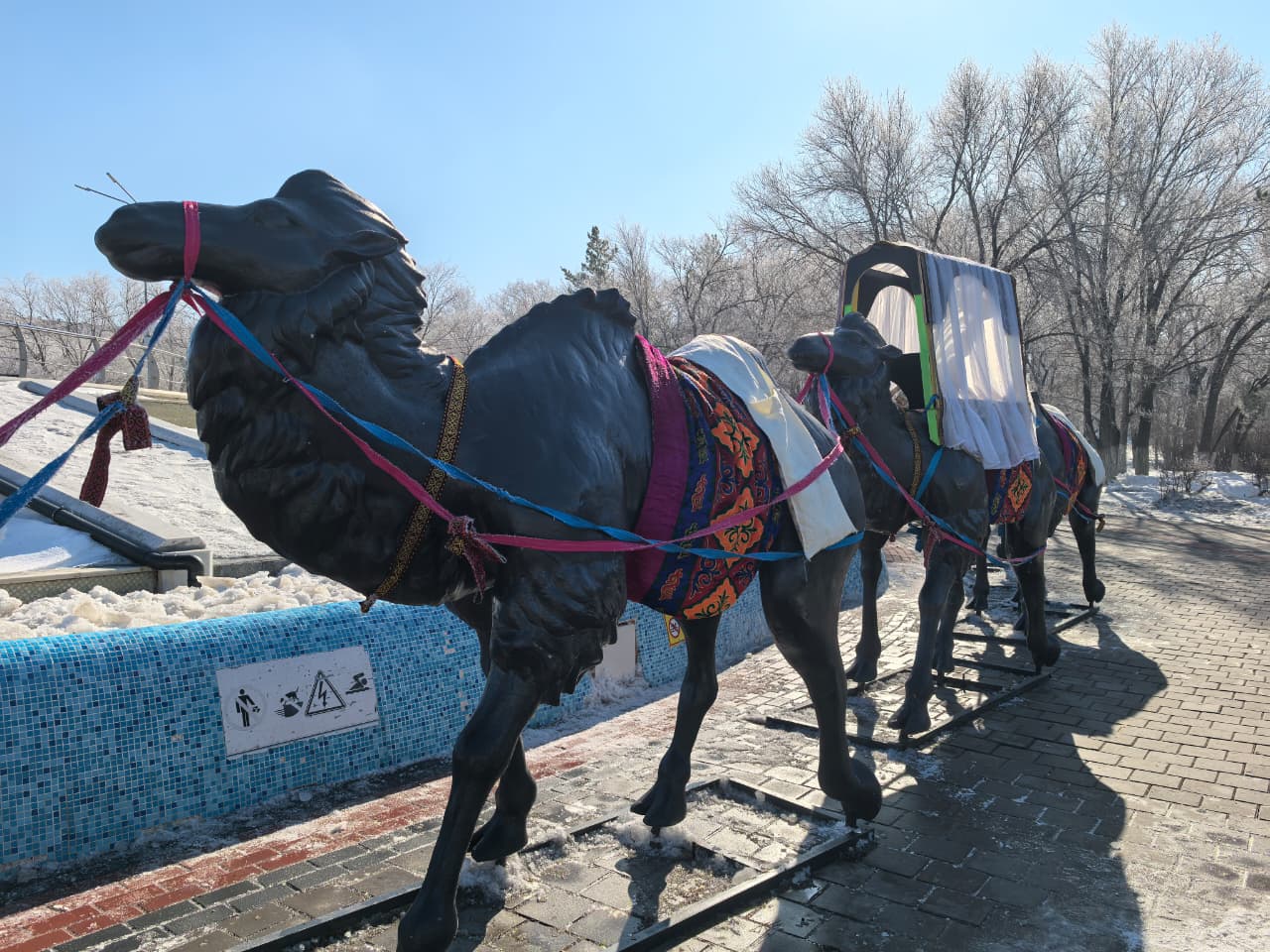На площадках уже установлены декоративные фигуры: величественные верблюды, изящные лошади, символы кочевой культуры. Рядом появляются юрты, как напоминание о традициях, укладе жизни и гостеприимстве степного народа.