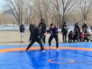 С самого утра людно на площади перед Дворцом культуры. Здесь гремят гири, участники выходят на помост, рядом идут поединки по борьбе. Зрители быстро собираются в плотные круги, реагируют на каждый удачный бросок и поддерживают спортсменов.