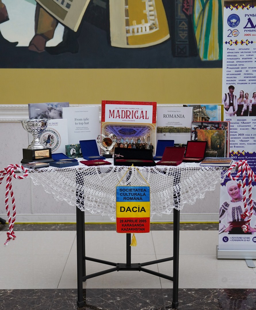 Здесь же с поздравлениями выступили представители государственных органов – заместитель акима Караганды Дархан Жиенбаев и дипломатического корпуса – Чрезвычайный и Полномочный Посол Румынии в Казахстане Мэдэлина Лупу, почетный консул РК в городе Клуж-Напока Штефан Гадола и председатель румынского культурного общества Dacia Виорика Ненахова.