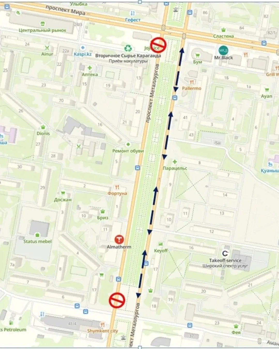 К слову, перекрытия уже стартовали. С 12 часов сегодняшнего дня введено ограничение движения на вышеназванном участке от улицы Амангельды до проспекта Мира по четной стороне. Более подробно показано на схеме.
