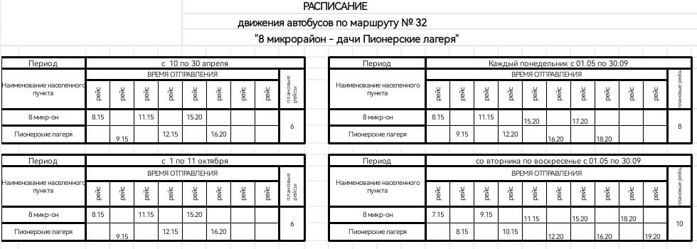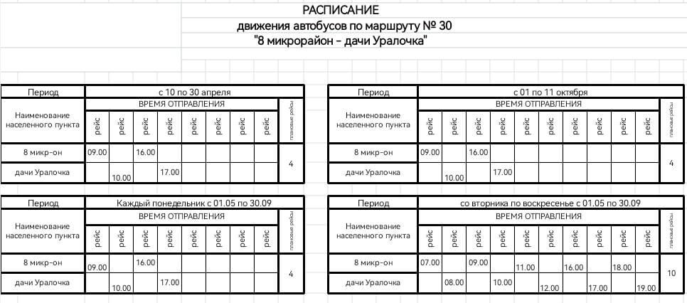 Расписание, указанное в таблицах, составлено так, чтобы жители могли успевать на работу и в обратном направлении, не теряя времени.