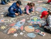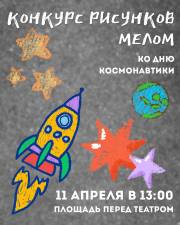 11 апреля в 13:00 площадка у театра превратится в импровизированный космодром творчества: здесь пройдет конкурс рисунков мелом на асфальте, приуроченный ко Дню космонавтики.