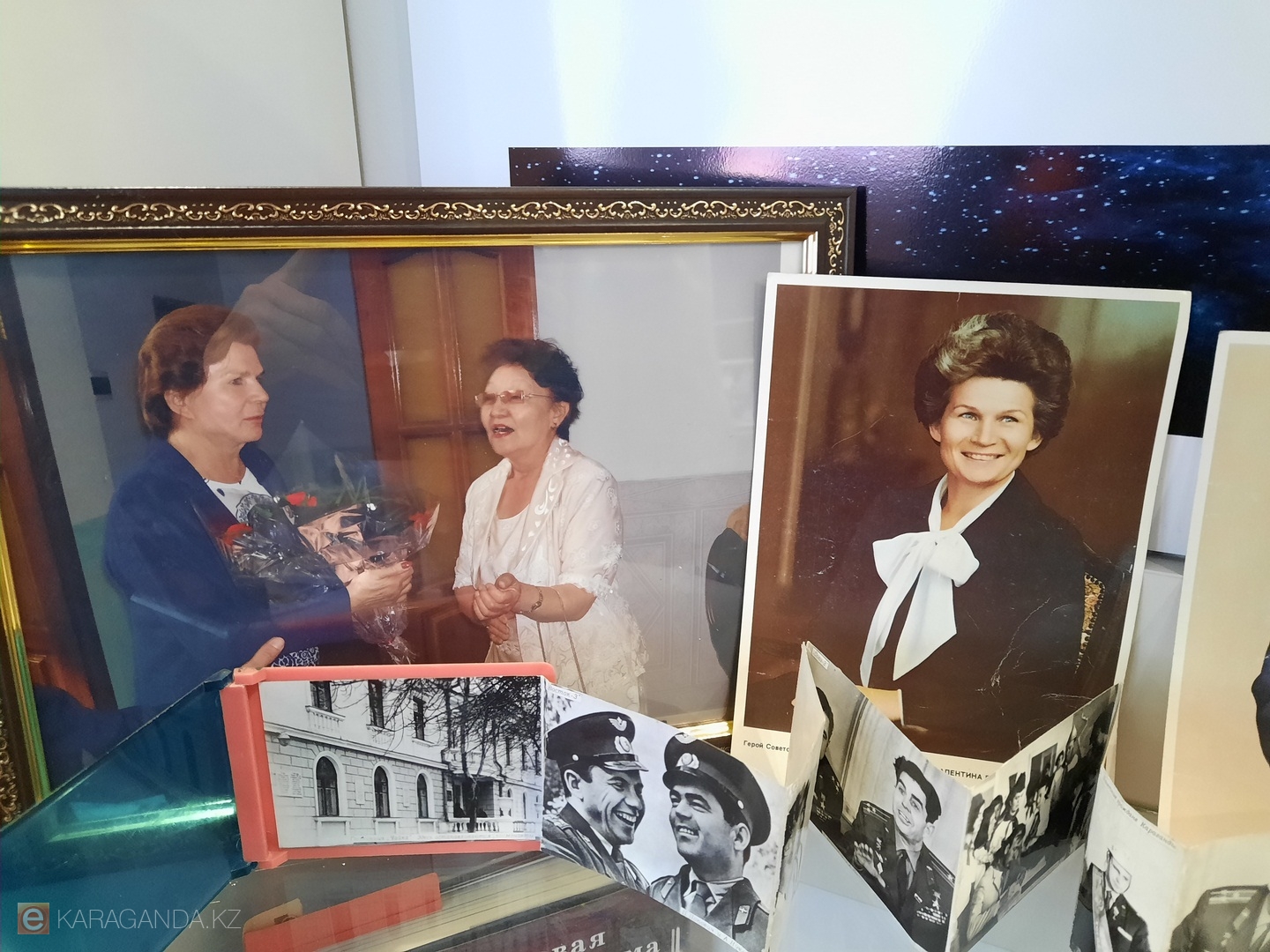 Такие экспонаты найти непросто: они выпускались ограниченным количеством и стоили недёшево. По всему залу размещены фотографии космонавтов, причём на многих снимках с ними – Магрифа Карибекова. Рядом на стенах – стихотворение «Земля, поклонись человеку!» Олжаса Сулейменова, которое он написал после полёта Юрия Гагарина в космос.