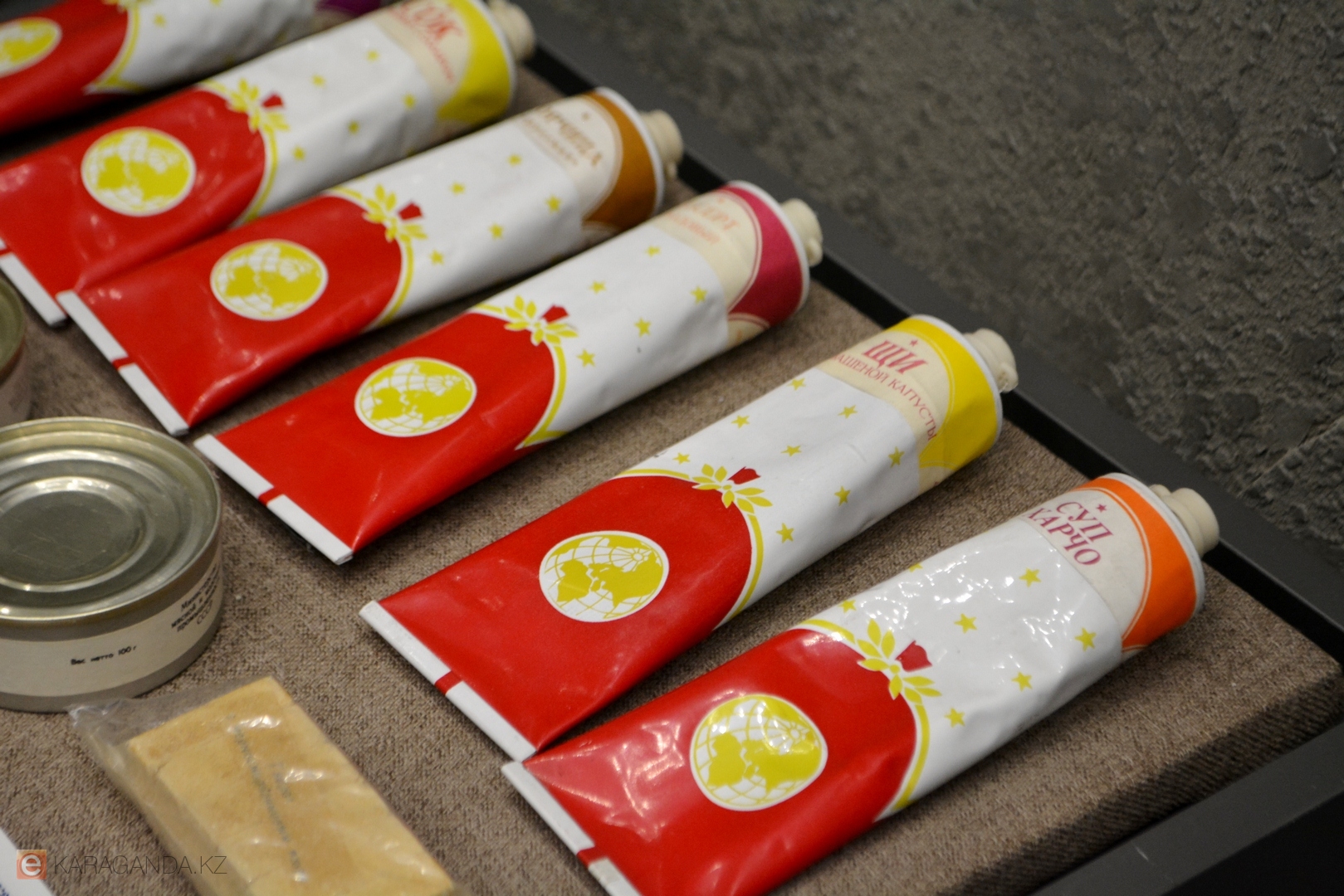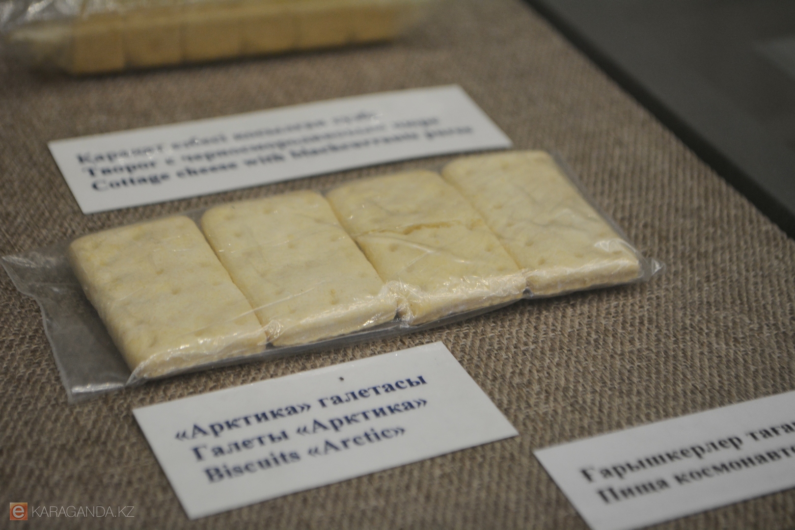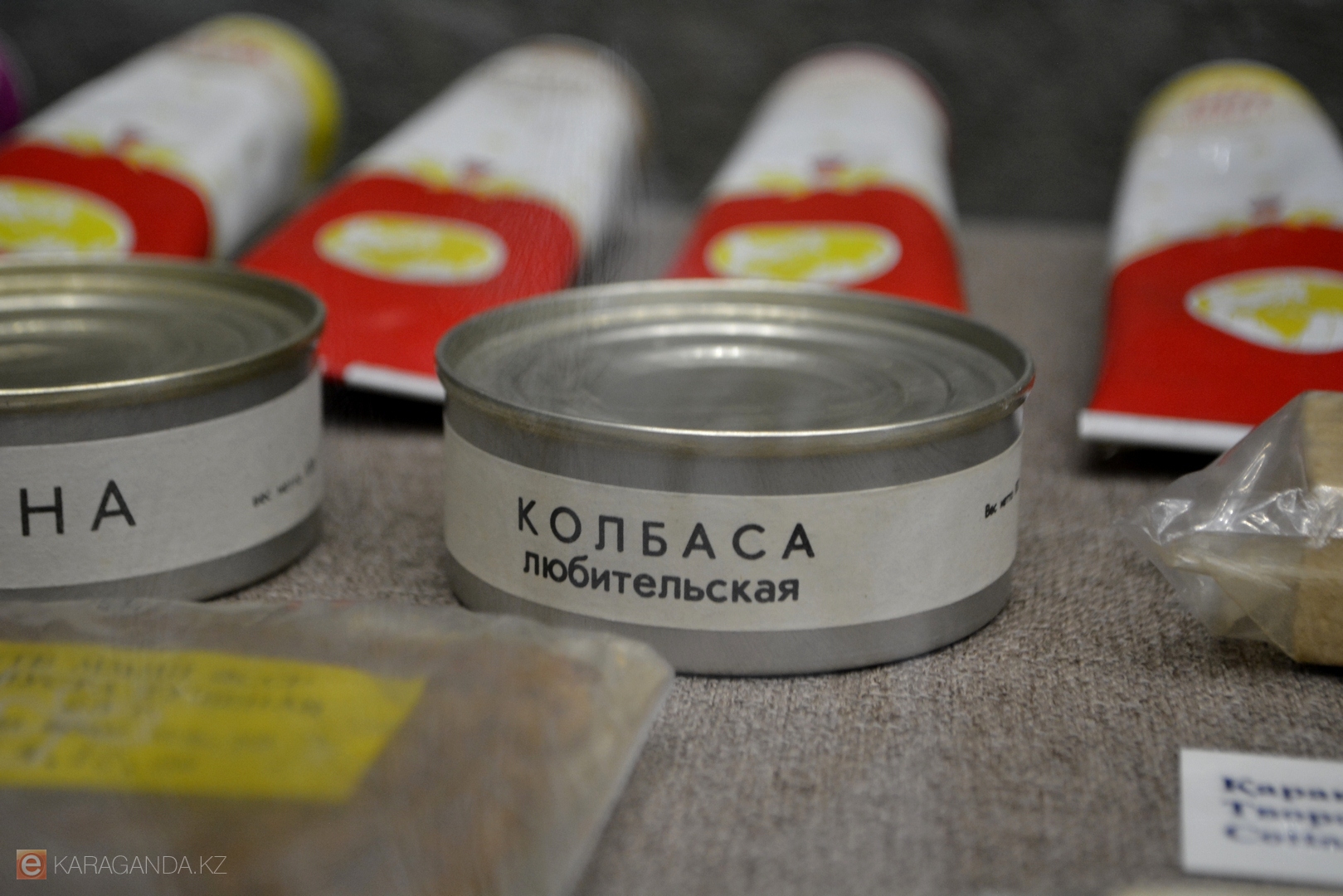 А сама тематическая экспозиция развернулась в фойе первого этажа музея: она небольшая, но рассказать в ней есть о чём. Заведующая отделом экскурсионно-массовой работы Зауреш Тебаева отметила, что все представленные экспонаты – от пищи космонавтов до почтовых марок и архивных фотографий – хранятся в фондах музея и поступали сюда в ходе исследовательской работы. Многие были собраны ещё в восьмидесятые годы.