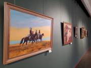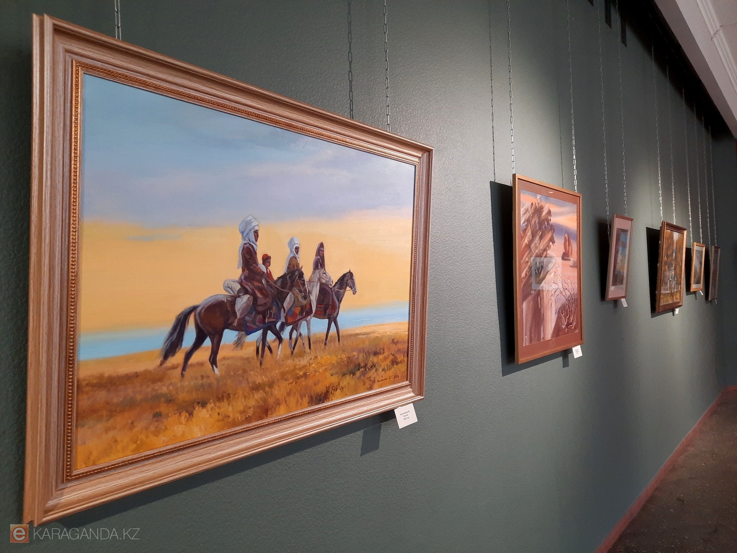 Бибигуль Исполова приводит в пример работу Мадихана Калмаханова «Детство» с мальчиком верхом на баране – и здесь уже яркое рассветное небо в бескрайней степи, «В путь», где герои полотна едут верхом на конях на закате. Так что пейзажи среди экспонатов новой выставки остаются одним из самых ярких направлений, которое тоже передаёт состояние в цвете.